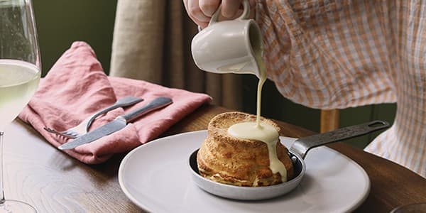 Our twice-baked cheese soufflé is an iconic dish here at The Black Horse – light, airy, and so utterly delicious.